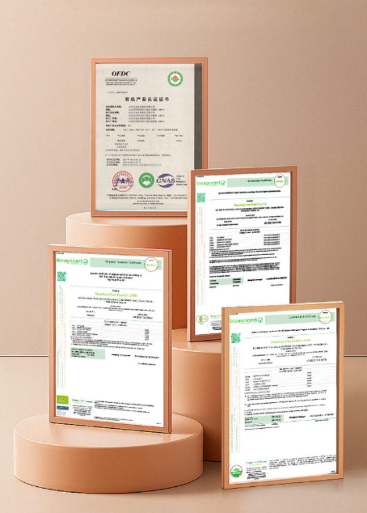 应物有机生产工厂通过了HACCP管理体系认证、HALAL认证、IFS国际食品标准认证、BRC认证、ERC认证及绿色食品认证等多项国内国际注册认证,以及IS022000、IS09000、IS015000、IS045000等多项食品安全管理体系认证。